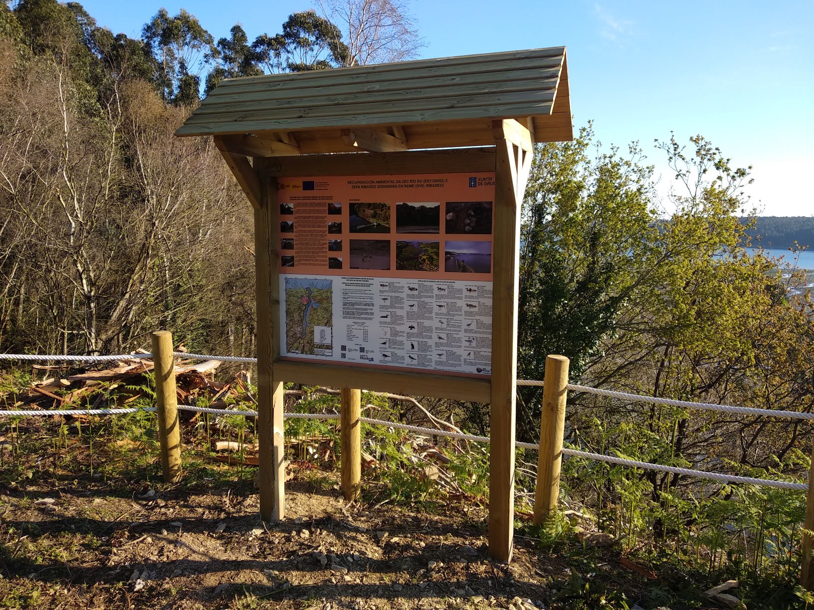 Deste xeito, o Concello de Ribadeo, a través dunha axuda Rede Natura 2000, da Dirección Xeral de Patrimonio Natural da Consellería de Medio Ambiente, Territorio e Vivenda, ven de implementar unha actuación na que se eliminan eucaliptos, como nas actuacións de Life Fluvial, e ademais se fai a recuperación ambiental dun miradoiro situado en Reme (Ove, Ribadeo). O rexedor contou que “nestes días estamos rematando estas obras de recuperación ambiental do miradoiro de aves que hai aquí na marxe galega da ría de Ribadeo, na parroquia de Ove. Ven substituír a outra infraestrutura que estaba moi deteriorada co paso do tempo e, sobre todo, con moitos signos de vandalismo que tiña”.